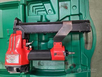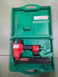 Chiodatrice pneumatica Nikema professionale, usata. Attrezzatura robusta e affidabile, adatta a lavori di falegnameria, carpenteria e assemblaggi in legno. Funzionamento ad aria compressa. Completa di valigetta rigida originale Nikema. Condizioni generali buone, con normali segni di utilizzo visibili dalle foto. Sempre utilizzata in ambito professionale.