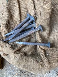 Chiodi in ferro, due misure 10 cm 15 cm, anno 1960 nuovi mai usati, fatti a mano, per restauri o per staccionate