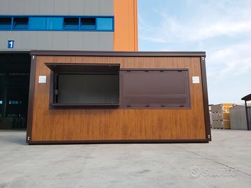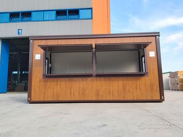 Realizzazione di monoblocchi ad uso chiosco bar di svariate dimensioni, realizzati in pannelli coibentati vari colori, completi di porte di accesso esterne, finestrature ed infissi tecnici uso sportellone come in foto.