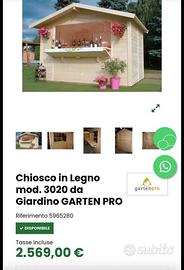 chiosco in legno di abete,2x3,completo di pedana e tetto,nuovo,ancora imballato Vendo per cambio progetto lavorativo
