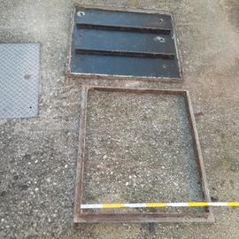 Chiusino quadrato completo, prime 2 foto, carrabile con mezzi leggeri, misura 50 cm luce foro, spessore compresa la base di appoggio cm 4, Euro 25.