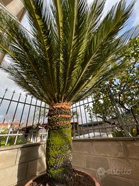 Grande Cicas Revoluta 26 anni, la pianta è alta in totale 2,5 metri distribuita con vaso alto 60 cm,il fusto 90 cm ( 105 cm di diametro) e le foglie che oscillano tra 130/150 cm, il suo peso totale orientativo è circa 250 kg. Come si può notare dalle foto questa pianta è molto rigogliosa foglie di colore verde intenso gode di ottima salute. Nell’eventualità ci fossero persone interessate devo informare che la pianta è trasportabile con mezzo cassonato aperto possibilmente con braccio idraulico sollevatore e nel caso si voglia interrare sarebbe da organizzare prima del risveglio vegetativo….sono eventualmente disponibile per organizzare il trasporto.