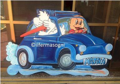 Sagoma in legno dipinta a mano, impermeabilizzata, colori e materiali atossici, moltissimi modelli ognuno disponibile nella misura desiderata, da 20cm fino a oltre 2 metri, costo secondo disegno e misura ce ne sono di ogni prezzo. Spedizione ovunque