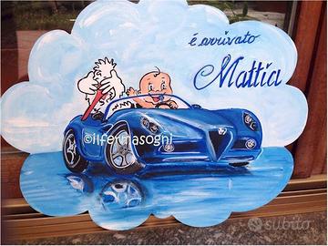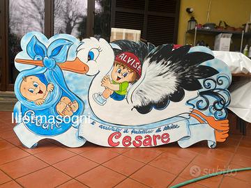 In legno diponta a mano, impermeabilizzata , colori e materiali atossici, personalizzabile, misure fino a oltre due metri, spedizione tutta italia in 24h