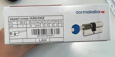 Vendo cilindro di sicurezza a profilo europeo Anche per porte blindate Dormakaba expert cross Misure 30+30mm corpo 70 mm codolo per montaggio pomolo 3 chiavi incluse (in bustina ancora sigillata) Tessera di sicurezza inclusa (in bustina ancora sigillata) Dal sito del produttore: LAM=barre anti spezzamento Chiavi LK= chiave adatta per porte con defender Duplicazione chiavi protetta, possibile solo presentando la tessera Vendo perché la precedente proprietà l’ha lasciato con la casa, inutilizzato