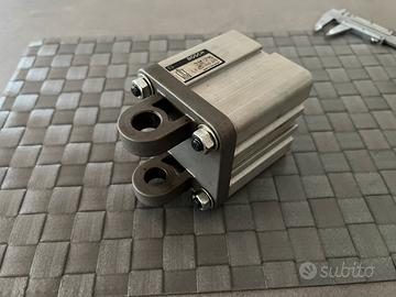 Nuovo. Cilindro doppio effetto pneumatico, diametro alesaggio 63mm, corsa 30 mm, corpo in alluminio anodizzato e comprensivo di flangia di fissaggio per perni. Forza calcolata di circa 300 kg