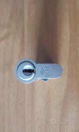 Vendo CILINDRO EUROPEO CISA RS 3 31/60. Il cilindro è usato ma in ottime condizioni fornito di 2 chiavi più la card INDISPENSABILE per poter fare eventuali ulteriori duplicati. Vendo il cilindro a 80 euro. NON SPEDISCO. SOLO RITIRO A MANO SU ROMA. SICUREZZA DEL CILINDRO Resistenza alla rottura e sfilamento: SIGILLO Anima di acciaio bi-materiale. 6 lamelle in acciaio temperato (maggior resistenza) ed 1 in acciaio inox (maggior flessibilità). Resistenza al “bumping” o percussione: impossibilità di reperire chiavi grezze. Resistenza alla tecnica di effrazione con impressione o cera. Resistenza al trapano: sistema di cifratura in acciaio temperato. Tutti i perni e controperni e le spine in acciaio temperato. Resistenza al grimaldello: almeno tre file di perni e controperni disposti radialmente; 2 perni attivi, azionati dall’elemento mobile sistema brevettato; particolare sagoma dei perni e dei controperni. Resistenza alla spinta: camma sporgente. SICUREZZA DELLA CHIAVE Chiave brevettata. Resistenza alla clonazione: chiave dotata di elemento mobile con nuova sagoma. Security Card: per la duplicazione autorizzata delle chiavi. Le chiavi possono essere duplicate esclusivamente da CISA dietro la presentazione della Security Card. Sistema di cifratura: radiale, fino a 15 perni e 5 file. Fino a 8 miliardi di cifrature ovvero chiavi diverse. Caratteristiche tecniche: • Sistema brevettato Cisa: chiave con elemento mobile • Security Card: duplicazione autorizzata solo presso Cisa • Corpo in due parti di ottone con giunto di accoppiamento in acciaio antitorsione • Cilindretti in ottone con spina antistrappo • Perni in acciaio temprato • Controperni in acciaio temprato antigrimaldello • Molle in acciaio inox Dotazione: • 2 chiavi • Security card • Vite di fissaggio