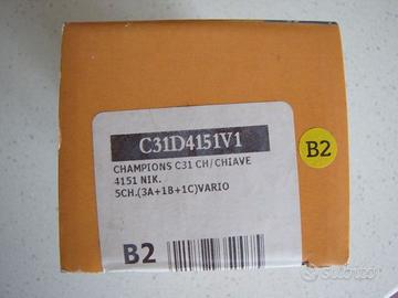 Cilindro Europeo di sicurezza Champions Mottura C31D4151V1 nuovo, scatola ancora sigillata. Comprende 3 chiavi padronali, 1 di servizio, 1 di cantiere, 1 carta di proprietà. Doppio sistema di cifratura magneto-meccanico e rinforzo antistrappo , cilindro chiave/chiave con misure 41+51 mm per un totale di 92mm.