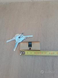Cilindro ovale per porta in ottone marca Yale, lunghezza 55 mm, 22/22 con tre chiavi.