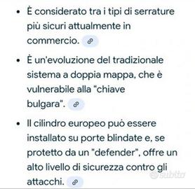 Cilindro per porta blindata con security card e almeno 4 chiavi in buone condizioni.