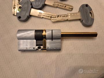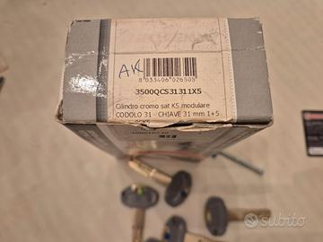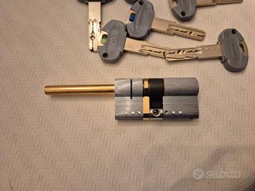 Cilindro europeo di elevata sicurezza con codolo rasabile (mm 62 31-31). Codice 3500QCS31311X5. 5 chiavi cliente + 1 cantiere. Nuovo mai utilizzato
