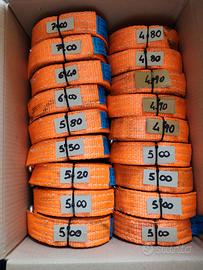 Cinghie a cricchetto di varie misure dai 3 mt ai 7 mt, (come si vedono dalle foto) larghezza di 40 mm, le misure sono da considerarsi senza cricchetto, utilizzate 1 sola volta come nuove