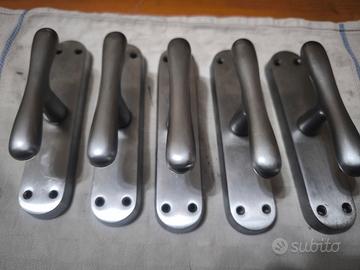 Cinque maniglie della per porta balcone/porta finestra in materiale acciaio satinato.