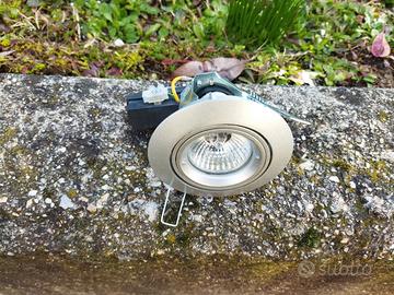 Cinque Porta Faretti da Incasso Orientabili, in Alluminio. Attacco per lampada modelli GU10/GZ10. Adatto per Alimentazione da 6V a 230V AC/DC Compreso di Lampade Osram Halopar 16 64824 FL 50W/ 230V/ GU10 Diametro Foro Incasso 80 cm.