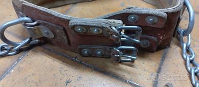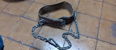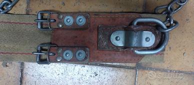 In vendita cintura di posizionamento per lavori in quota , in dotazione ai tecnici dell' Enel e della Telecom. Realizzata in cuoio e canapa , con fibbie, catena e moschettone . L'aspetto nel complesso è solido e privo di rotture. E' ovviamente datato ma integro