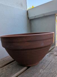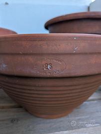 Vendo splendida ciotola (bowl) in vera terracotta di alta qualità del prestigioso marchio "Fornerie Trevigiane". Caratteristiche: Marca: Fornerie Trevigiane (storica azienda veneta). Misura: Diametro 26 cm. Forma: Ciotola bassa, perfetta per composizioni di piante grasse, bulbi o perromatiche. Lavorazione: Made in Italy, terracotta porosa che assicura la perfetta traspirazione delle radici. Condizioni: Ottime, integro, senza crepe né sbeccature. Presenta solo la naturale patina del tempo. Un pezzo robusto e di classe per arredare balcone o giardino. Prezzo non trattabile. Ritiro a mano a corsico