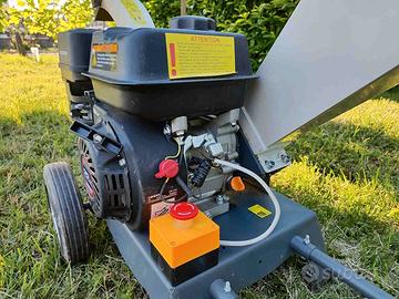 Cippatore Loncin con motore a benzina da 212cc 7HP. Macchina robusta in acciaio, con sistema di taglio a rotore, dotato di rullo pesante con controlame. Occupa pochissimo spazio, smontando rapidamente la tramoggia di carico e il condotto di scarico. Si trasporta facilmente a spinta tramite comodo maniglione. Adatto per giardini dove non si può o è difficoltoso portare allo smaltimento tutte le ramaglie delle potature. In questo modo il cippato può essere distribuito a terra diventando una risorsa che decomponendosi arricchisce il terreno. Acquistata per smaltimento sul posto ramaglie di grande conifera, usata pochissimo, ha lavorato meno di 15 ore, cedo ora per inutilizzo ad Euro 530. Diametro massimo ramo 50 mm.
