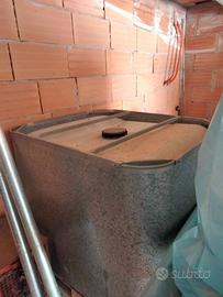 Cisterna in plastica, rivestita in camera di lamiera zincata e posta su un pianale di legno, adatta per orto, giardinaggio, raccolta acqua piovana, ecc., mai stata all'aperto ma conservata sempre in garage. Disponibile nel territorio di Amandola (FM) e limitrofi