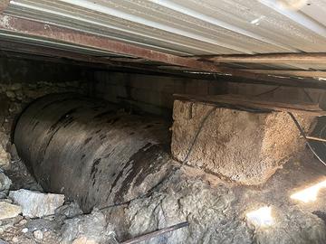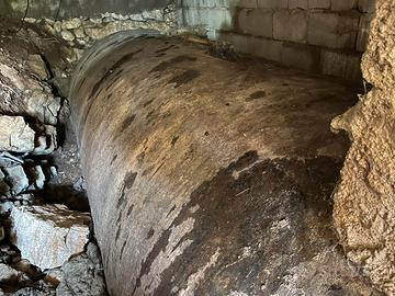 Regalo per inutilizzo cisterna usufruita per gasolio ma al momento inutilizzata e datata, cisterna monoparete rivestita con catramina; trasporto a carico dell'acquirente, utilizzabile dopo bonifica anche per acqua; misure circa 1,65 mt x 4,8 mt
