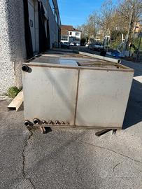 Vendesi cisterna in acciaio inox aisi304, MAI USATA. Misure 7.95mt di lungh. x 2.40mt largh. x 1.42mt altezza, per una portata totale di 27 mt cubi. La cisterna presenta anche svariati manicotti, sia nella parte superiore che inferiore. Inoltre in un angolo ha anche una botola per ispezione misure: 100x100. Prezzo: €6500 TRATTABILI escluso trasporto.