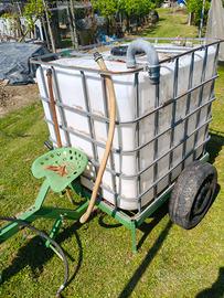 vendo cisterna da 1000l con pompa per irrigazione giardino, orto, campo montata su rimorchio da attaccare a trattorino