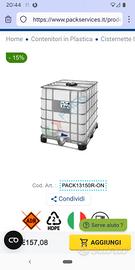 CISTERNA IBC 1000 LITRI IN PLASTICA, RIGENERATA CON OTRE NUOVA, COPERCHIO 150 MM, VALVOLA DI SCARICO 2", PALLET IN METALLO, COLORE NEUTRO. Ne ho comprate 3, ma me ne bastano 2. La cisterna si riempie velocemente con l'acqua piovana.