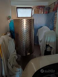Cisterna in acciaio inox 500lt per olio,vino ed altro dotata di coperchio ermetico, piedistallo per l'appoggio della cisterna e rubinetto antigoccia e ruota Ile e chiavetta di chiusura in acciaio inox