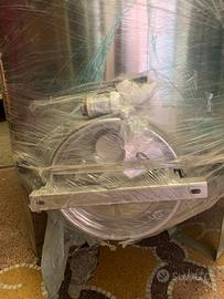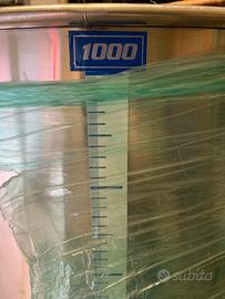 Cisterna inox 1000 lt sempre piena ad olio enologico. Prevista con sportello inox di vinificazione di diametro da 30.