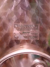 cisterna in acciaio inox per vino, con galleggiante a camera d'aria e rubinetto, coperchio sempre pieno e porticina. portata 1000 litri.