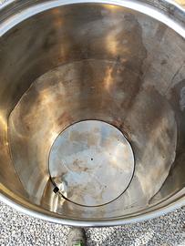 cisterna vino o altro alimentare acciaio inox 300 litri con galleggiante ad olio e coperchio alcune ammaccature
