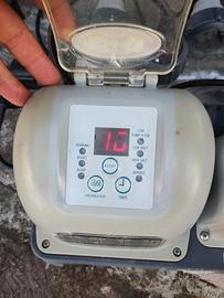 clorinatore Intex eco 7220 funzionante. 1 led è bruciato (vedi foto)e le cellule vanno sostituite. già completo di raccordi per tubi da 38mm. l'oggetto ha 6 anni.