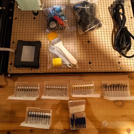 Vendo fresatrice CNC 4040 perfettamente funzionante, usata solo 2 volte poi abbandonata per mancanza di tempo, è pari al nuovo, ha solo un segno sul piano, ma nulla che aggrava sul funzionamento. Completa di sensore per l'altezza, tutti gli accessori in dotazione dalla vendita, mandrino da 500 watt, 5 set di frese quasi nuovo, ed un set di bulini. Possibilità di venderla assieme al laser presente sul mio profilo accordandoci sul prezzo.