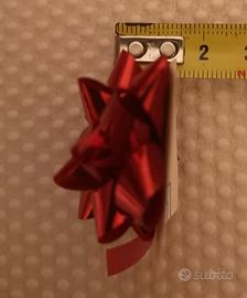 Confezione di coccarde rosse lucide, perfette per decorare regali o pacchi. - Colore: rosso brillante - Materiale: plastica metallizzata - Design a stella