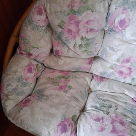 Ideale per il tuo giardino o sotto un portico ,divanetto 2 posti in bambù completo di cuscino a fiori lavabile, lunghezza 160 circa Robusto.Non presenta difetti