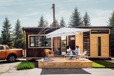 Casa mobile modello Coco House in pronta consegna. Non farti sfuggire questa casa mobile ideale per la tua dependance o per la tua struttura ricettiva, ora in sconto. Misure 2,50x8,50 dotata di soppalco e bagno, completo di sanitari. Gli infissi ampi la rendono particolarmente luminosa. Prezzo incluso di infissi, sanitari, impianto idrico ed elettrico, pavimento e rivestimenti. IVA, arredamento e trasporto esclusi.