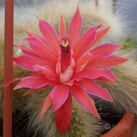 vaso 14 cm. L’ hildewintera colademononis è una pianta grassa pendente dai lunghi e grossi fusti ricoperti da fitta spinazione bianco brunastra: è proprio per l’ affinità ad una coda è stata soprannominata “coda di scimmia”. In primavera sgargianti fioriture rosse dalle sfumature rosa creano bellissime cascate sorprendendo chiunque. Pianta rustica in grado di abbellire qualsiasi spazio appeso. Insieme alla “regina dell notte” sono i due ricadenti più insoliti tra le piante grasse.