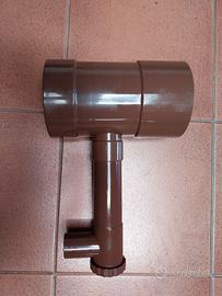 Collettore di recupero acqua piovana per grondaia con canali di diametro 100 mm. Color marrone, adatto sia per canali in PVC sia per canali in rame. Ottimo per riempire le cisterne da giardino.