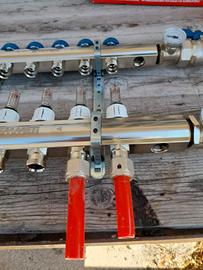 14 collettori prem. nichellati 7 vie 1 pollice; 3 collettori prem.nichellati 5 vie 1 pollice; 18 Kit valvole progress farfalla 1 pollice raccordo terminale; 220 tenuta diametro 17x2. 24x19 per tubo pex. materiale nuovo