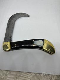 Vendo roncola d’epoca con manico in corno e inserti in ottone .