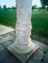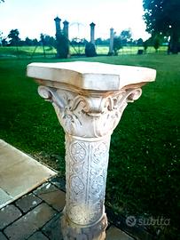 Bellissima colonna in stile, riccamente decorata, in pietra bianca. Decorazione unica per la tua casa o il giardino. Perfetta come appoggio per composizioni floreali o come base per un elegante tavolo in cristallo. H, 74 cm.