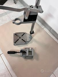 Colonna telescopica per trapano adatta a tutti i tipi di ttrapano. Compresa una morsa di fissaggio pezzo con apertura rapida mediante un tasto sulla manopola. Regolabile in ogni altezza. Utile per hobby.