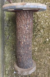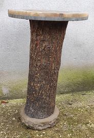 Colonna piedistallo artigianale con base in marmo, colonna con tronco in legno e ripiano in onice verde Pakistano.