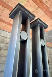 Coppia di pilastri in ferro realizzati artigianalmente su disegno, mai installati.