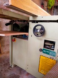 Vendo la mia combinata a 5 lavorazioni minimax lab 300 SCM: pialla filo e pialla a spessore da 30cm, carrello a squadrare e guida parallela (la lama può uscire dal piano fino a 8cm ed è inclinabile fino a 45°), toupie con annessa cuffia (non in foto) e cavatrice (non in foto anche questa perchè mai usata). La macchina non è nuova ma precisa e molto affidabile (è tutto regolabile e settabile abbastanza comodamente). Ha tre motori monofase, i piani sono in solidissima ghisa. Io ho aggiunto una striscia di multistrato sulla guida parallela, perchè era rovinata, per far scorrere meglio i pezzi. Mi ha accompagnato nella realizzazione di tanti progetti ed è sempre stata molto affidabile, io ho lavorato principalmente con il legno massello ma c'è la possibilità di mettere l'incisore per lavorare laminati senza sbavature. Se interessati posso girarvi altre foto comprese quelle della cavatrice e della toupie. Ogni motore ha una potenza attorno hai 1600w. Non spedisco