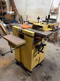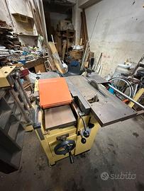 Combinata per legno usata ma ben tenuta, 220 volt con 6 lavorazioni Pialla a filo e spessore con coltelli di ricambio. Bucatrice con serie di punte Sega circolare con varie lame Tenonatrice con accessori Accessiri a corredo