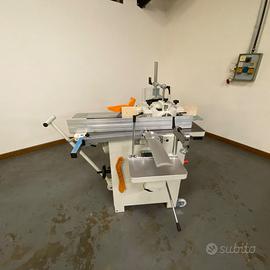 Prezzo iva compresa per la vendita online + costo spedizione diretta. MACCHION ATTREZZATURE S.a.s. Centro affilatura - Commercio macchine per legno Video e foto su: INSTAGRAM: Macchion_Attrezzature FACEBOOK: Macchion Attrezzature WEB: macchion.it PAGAMENTI RATEIZZATI – NOLEGGIO. Codice Articolo: MINIMAX 01 – nuovo. Combinata per legno Minimax C 26g CE. Pialla a filo e spessore da 260 mm. Lama circolare diametro 250 mm. Lama inclinabile a 45 gradi. Carro squadratrice mm 1200. Toupie con albero diametro 30 mm. Dimensioni completamente montata cm 145x220x90h. Dimensioni senza telaio squadro e cavatrice cm 145x85x90h. Peso kg 260. In foto esempio di macchina così composta (prezzi iva compresa): Combinata C26g CE base = € 4.918. Cavatrice + € 402. Telaio di squadro + € 415. Kit ruote per spostamento + € 123. Motori 220 volt 1,8 Kw + € 181.