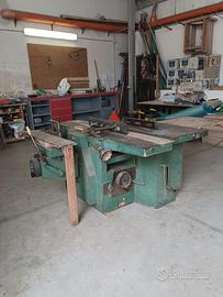 combinata cinque lavorazioni 380v, perfettamente funzionante in tutte le sue parti completa di accessori per sega, toupie, pialla filo e spessore e bucatrice, completa di ricambi, lame, frese, coltelli e punte