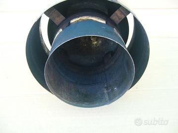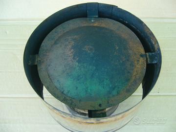 Comignolo fumaiolo antivento in acciaio inox AISI 304 x 5/10 con attacco femmina per tubo diametro 12 cm, usato solo una stagione in ottime condizioni , presenta solo un po' di annerimento dovuto dal fumo.