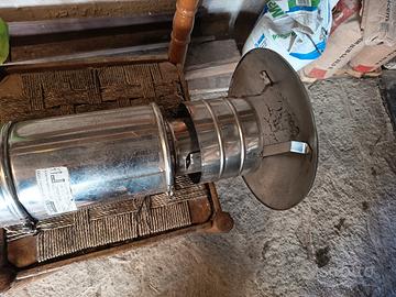 Vendo comignolo per stufa a pellet, bocca da 10 cm, lunghezza totale 70 cm circa. Comignolo doppio isolamento, in modo che il tubo non subisca variazioni dovute alle temperature esterne e mantenendo un tiraggio ottimale.