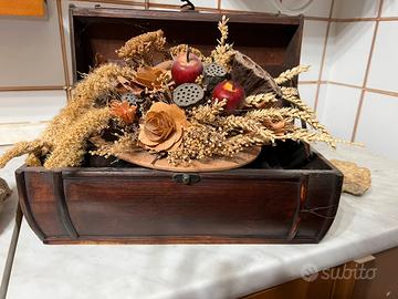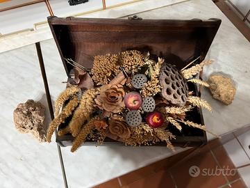 Composizione floreale fiorì veri essiccati ci in bauletto in noce nazionale